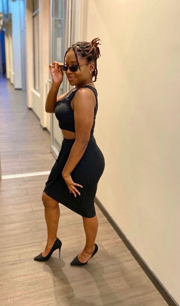 Ribbed two-piece set with cropped tank top and wrap front midi skirt.