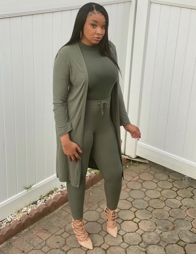 The ‘On the Go’ set is perfect for just that. Situations and events that require something quick, easy and stylish while on the go. The set includes a cardigan and matching leggings. Both cardigan and leggings are ribbed knit. The leggings have an elasticized waist with ribbon bow and can be worn high waisted.