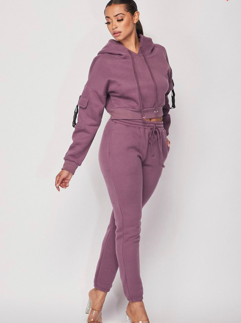 If looking cool while staying warm is the objective then this set is the one for you. When we say it is thick..we mean thick THICK. Don’t let the crop top fool you. This set does the job. In addition to it being comfortable, the thick fabric and fleece lining will keep you warm.