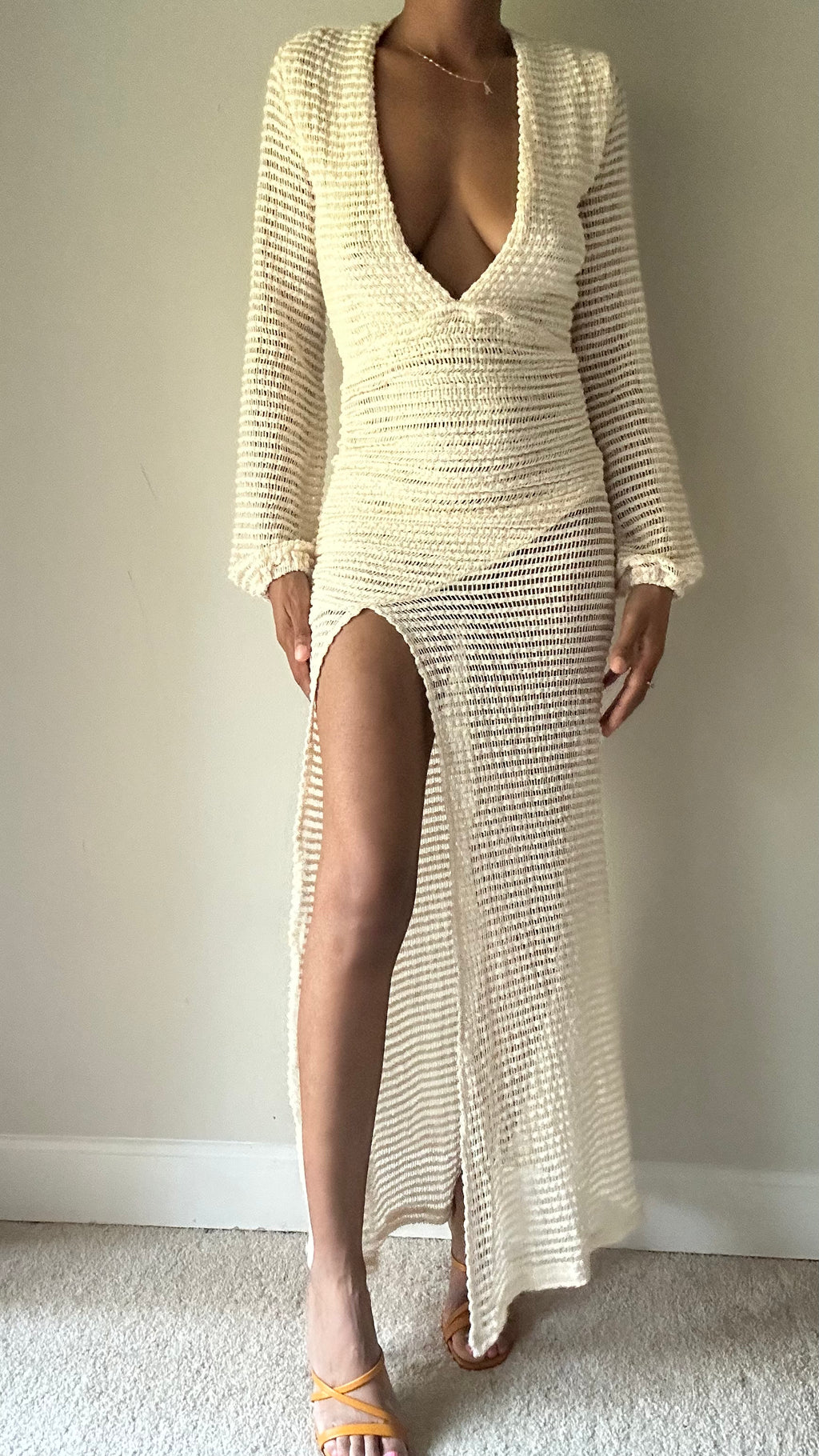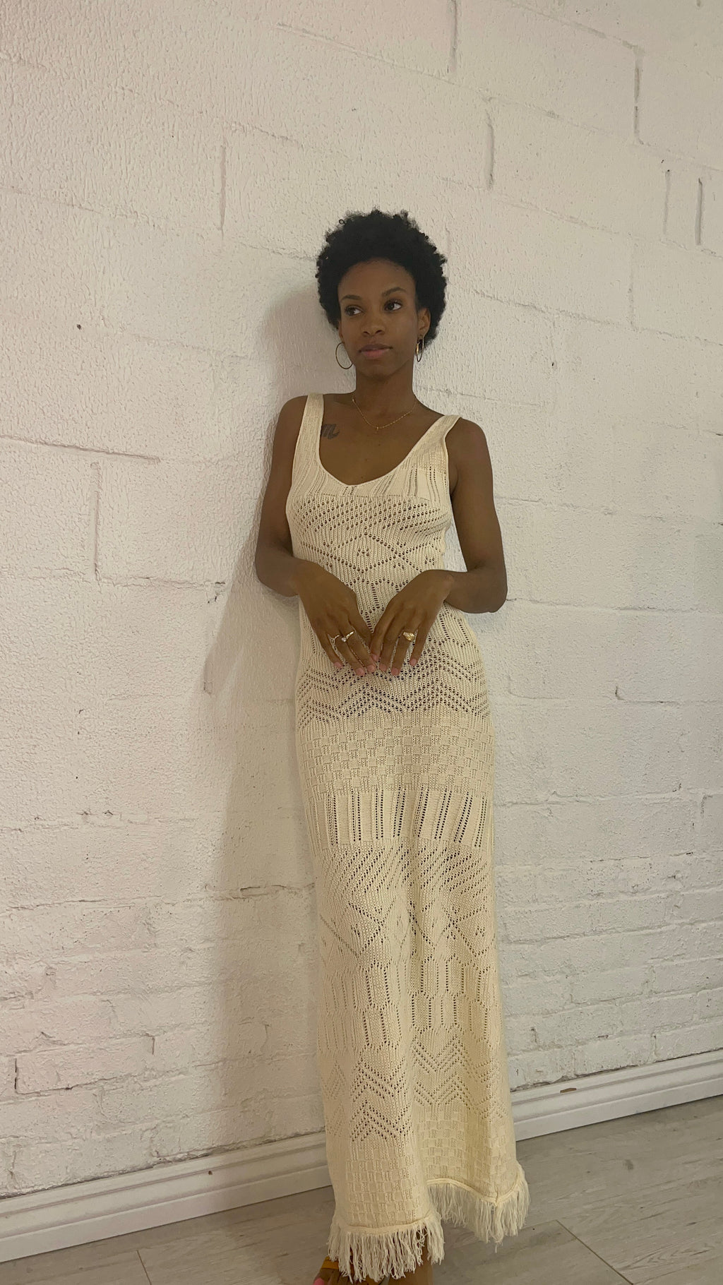 Tulum Crochet Knit Tassel Hem Maxi Dress