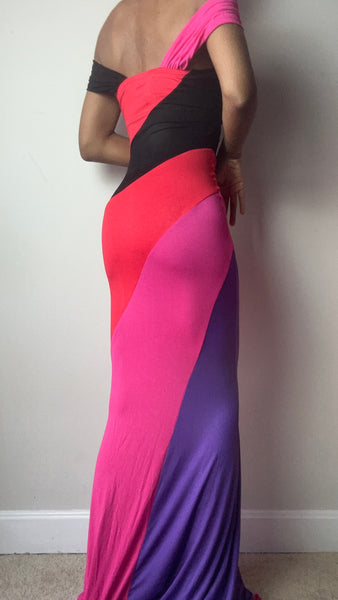 Candy Girl Pink Color Block Off Shoulder Maxi Dress