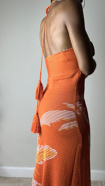Island Vibe Orange Tropical Print Knit Midi Dress