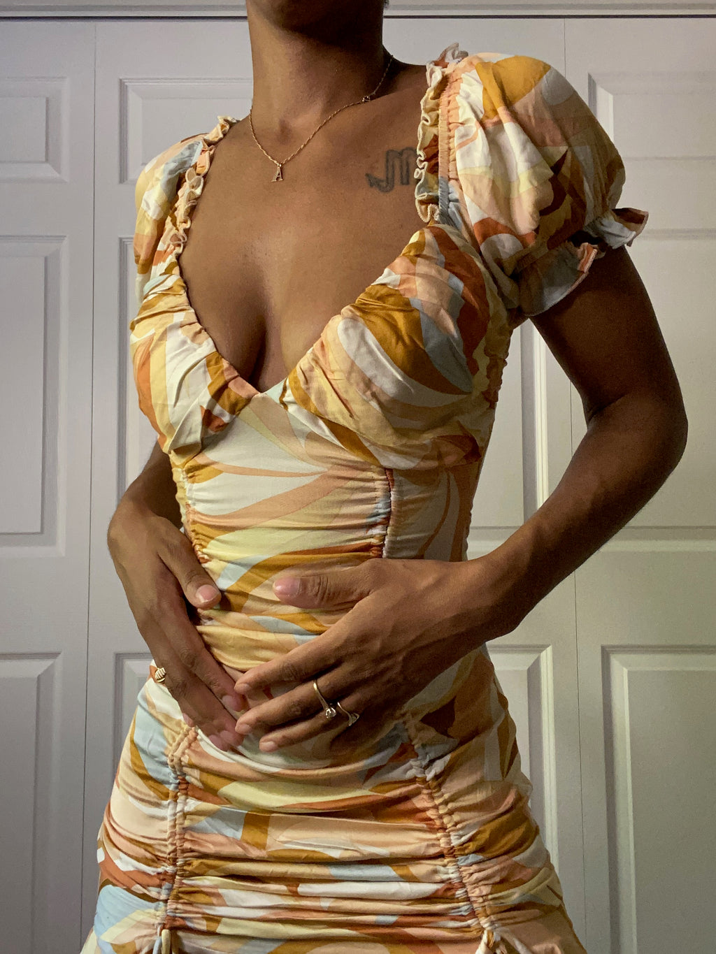 Bearing Fruit Print Jacquard Cutout Mini Dress