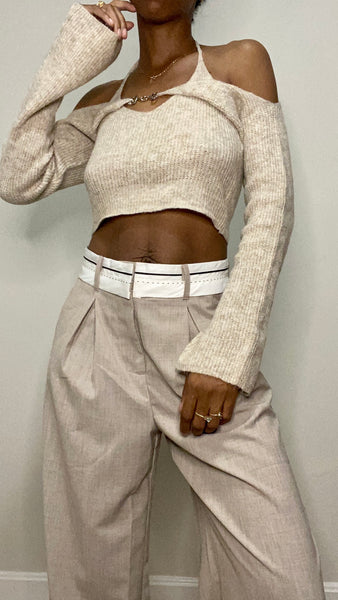 Two piece set. Comes with halter top and cropped off shoulder sleeve.