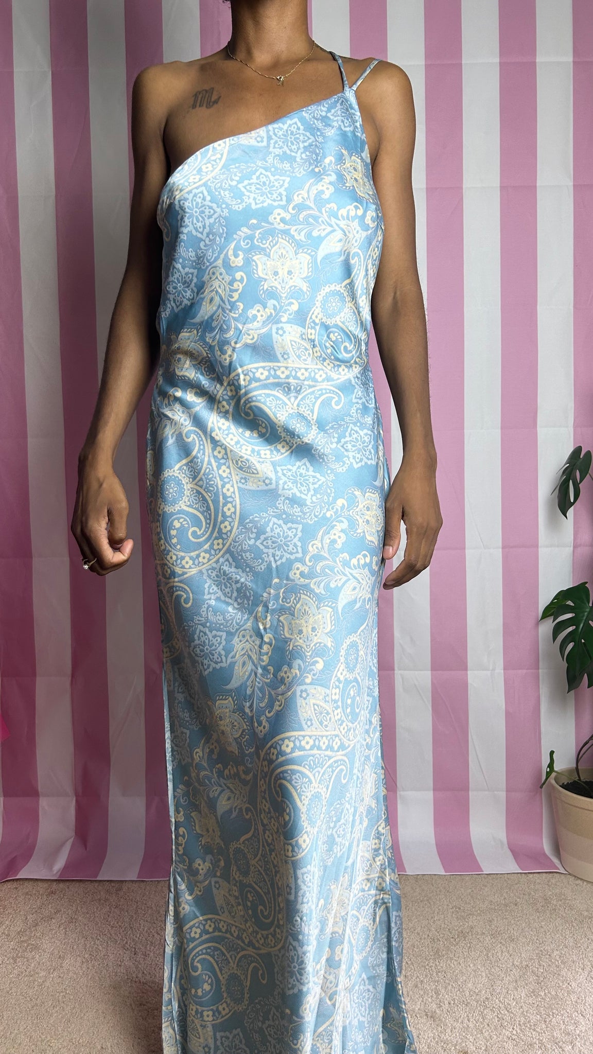 Make a statement in our Emory Paisley Satin Slip Dress. With its one shoulder paisley print, this stylish dress will have you feeling ready to take on any adventure. Move with confidence knowing the open cowl back will turn heads at any occasion. Dare to break boundaries and rock the night away!